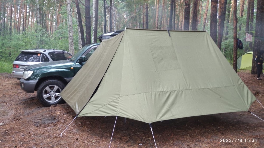 Краткое описание:Тент-маркиза 3,3м х 6м, в собраном виде размер по машине 2м, наружный чехол закреплён на металлическом основании (алюминиевая планка).Крепится на поперечины или багажник .Материал-Оксфорд D600 ,чехол морозостойкий, пр-ва Южная Корея. Цвет серый или зелёный. Тент-маркиза изготавливается в России. г. Новосибирск. В отличии от стандартной маркизы 3,3мх6м здесь есть передняя шторка и 2 дополнительные алюминиевые стойки.